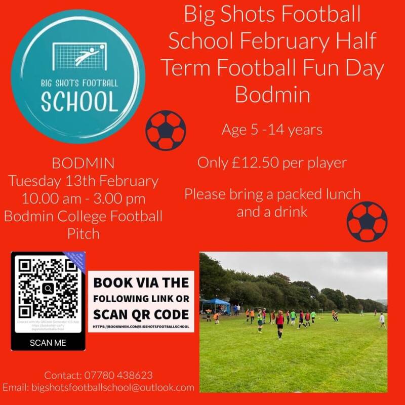 Exciting news! Booking is now live for our Bodmin February Half Term Football Fun Day on Tuesday 13th February! ⚽️