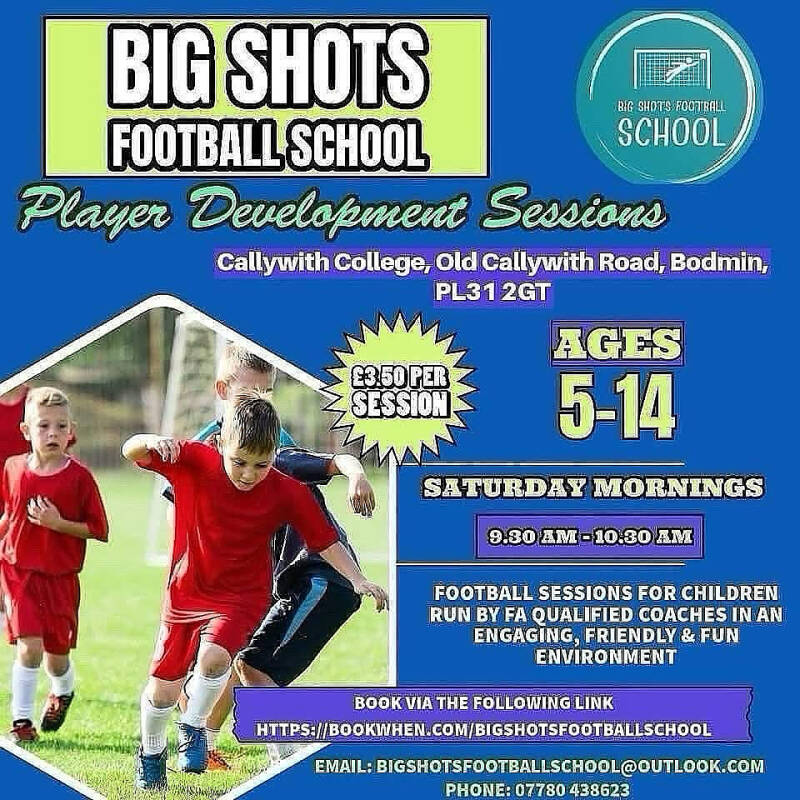 Held on a Saturday morning from 9.30 am - 10.30 am on the 3G pitch at Callywith College, Old Callywith Road, Bodmin, PL31 2GT (venue subject to change due to college events and school holiday closures - please check our social media pages).